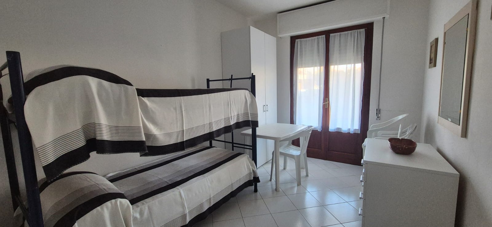 Marina di Massa a soli 300 metri dal mare, appartamento posto in piano primo con splendido balcone abitabile. Composto nel suo interno da: ingresso, soggiorno con angolo di cottura, camera matrimoniale, camera con letto a castello e bagno con doccia. Garage al piano seminterrato. Possibilità del 5° letto. CIN: IT045010C2WY3JN2XN