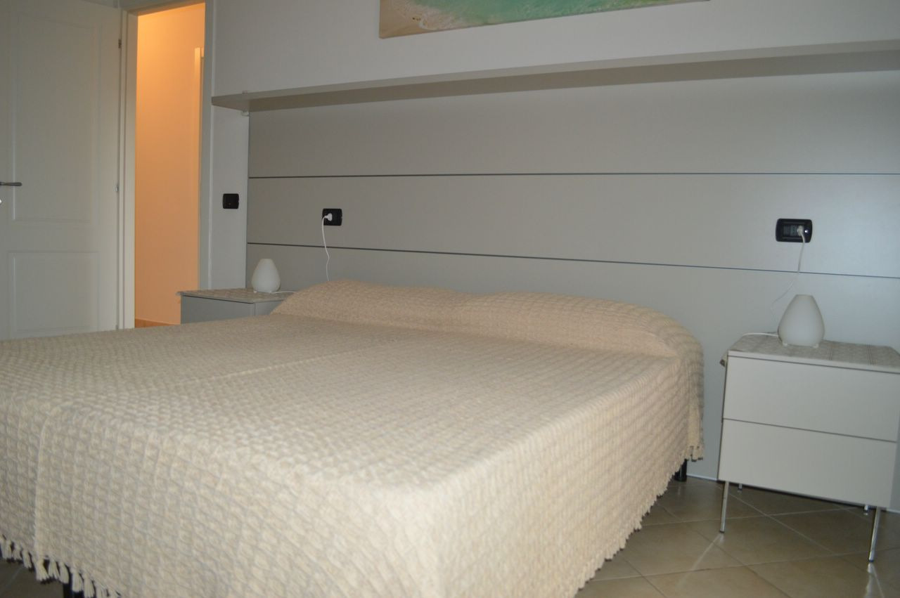 APARTMENT WITH PRIVATE ANGULAR GARDEN, FAR ONLY MT 300 FROM THE BEACH, SETTLED IN A VERY NEW-BUILT BUILDING. MADE UP OF: LIVING ROOM WITH KITCHEN AREA, TWO MASTER BEDROOMS AND BATHROOM. GARDEN WITH VERANDA, GARAGE. WASHING MACHINE, TV, DISH WASHER AND AIR CONDITIONED.